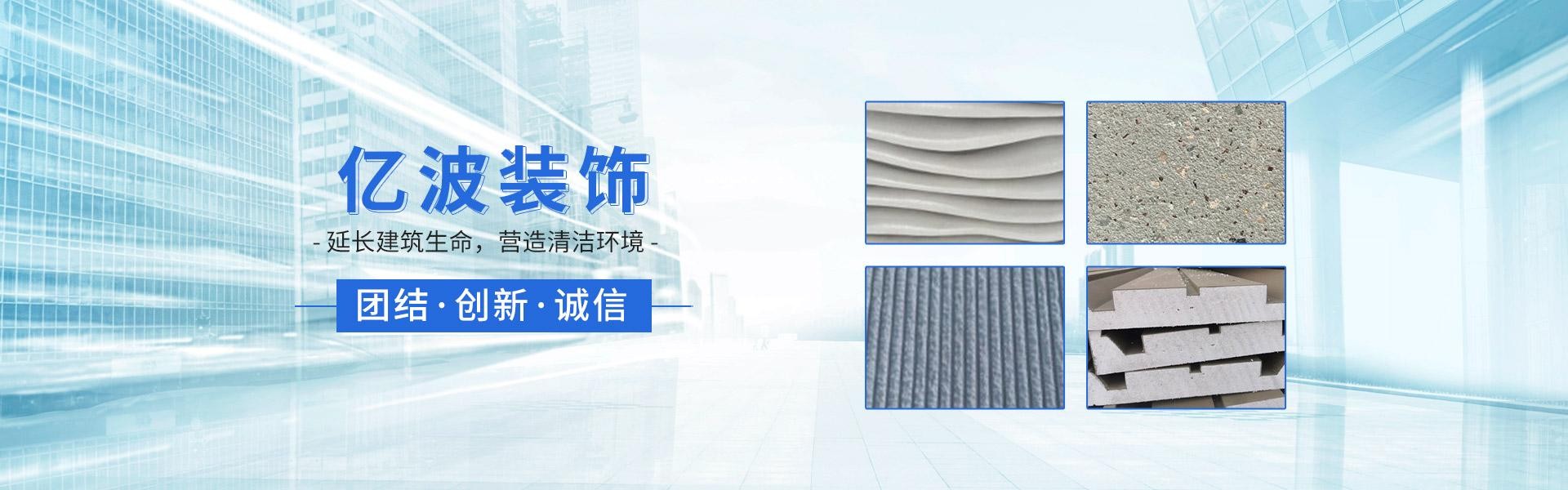 亿波装饰产品涉及超高性能混凝土UHPC、高性能HPC幕墙挂板、清水混凝土挂板、高性能GRC彩色幕墙、高性能GRC造型板、GRC大型构建产品等诸多产品。拥有多项自主知识产权和专利技术,确保我们的产品和服务始终处于行业前沿。